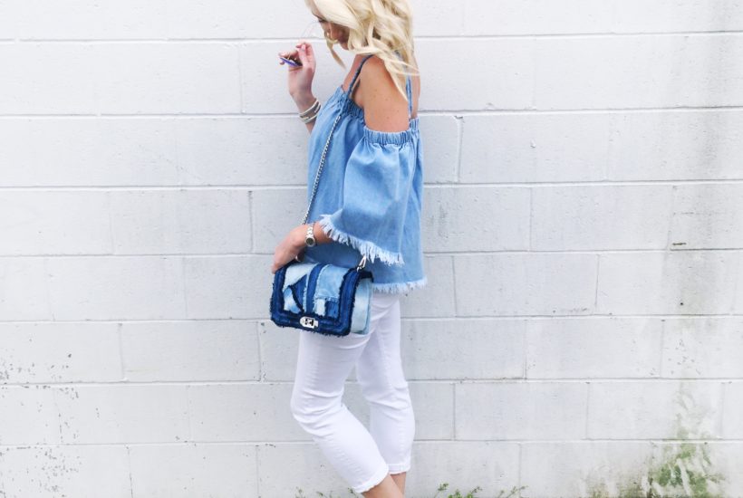 J.O.A. Chambray Top / 7 For All Mankind Jeans/ Rebecca Minkoff ‘Love’ Crossbody/ Sam Edelman ‘Yardley’ Pump Blue Mirrored Ray Ban Aviators Happy Monday, lovelies!! I hope you all had a great weekend! Today’s post is all about chambray, denim and off the shoulder! If you haven’t already notices, denim is in high demand and it’s no longer just for…